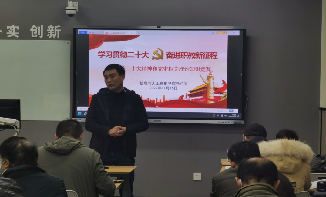 为充分调动学院广大教职工学习宣传贯彻党的二十大精神的积极性和主动性,不断巩固学习成效,学院党总支精心谋划,围绕学习党的二十大精神,开展一系列活动。学院在前期已开展的集中理论学习和红色基地实践教育的基础上,于11月16日下午,在银湖校区主教学楼103智慧教室,组织开展“党的二十大报告和党的创新理论成果和党史”知识竞赛。学院全体教职工参加竞赛活动。