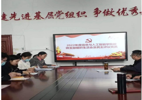为贯彻落实党员组织生活制度,根据校党委要求,3月29日下午,信息与人工智能学院教工党支部和学生党支部召开2022年度组织生活会,并对全体党员进行民主测评,信息与人工智能学院全体在职党员参加。会前,校党委委员、组织部长李冬生对组织生活会从学习教育、听取意见、查摆问题、开展批评等各个环节,都及时给予了指导,他指出,要以此次组织生活会为契机,结合自身存在的问题,明确整改方向,细化整改措施,进一步抓好支部建设,确保组织生活会取得实际成效。教工和学生支部做了充分的准备,制定了组织生活会方案,开展专题集中学习,组织党员学习《中国共产党纪律处分条例》《中国共产党支部工作条例(试行)》,宣传贯彻了组织生活会和民主评议党员工作的目的、程序及要求等内容,开展谈心谈话,听取党员群众对支部工作及班子的意见建议,认真查摆问题。