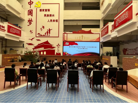 根据学校党校统一部署,10月16日上午,信息与人工智能学院党总支组织师生在学校“党建思政实践基地”集中收听收看党的二十大开幕实况,认真聆听习近平总书记代表第十九届中央委员会向大会所做主题为《高举中国特色社会主义伟大旗帜,全面贯彻[习近平新时代中国特色社会主义思想,弘扬伟大建党精神,自信自强、守正创新,踔厉奋发、勇毅前行,为全面建设社会主义现代化国家、全面推进中华民族伟大复兴而团结奋斗》的工作报告。学院党总支班子成员、教师党支部、学生党支部以及学生代表等参加了集中收看学习。