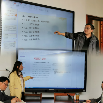 会上,首先由汤恒老师领学《安徽省学校安全条例》。全体教职工围绕着《条例》制定的必要性和主要内容,集体学习了《条例》的总则、风险防控、安全管理、事故处理和法律责任等方面的内容。实验员郭琼老师就实验室安全管理工作进行了宣讲。她围绕实验室的日常使用与管理、存在的主要风险点以及安全隐患的排查与应对等方面做了详细介绍,倡导每位教职工切实做到尽早发现问题,及时解决问题,真正把安全问题解决在萌芽状态。