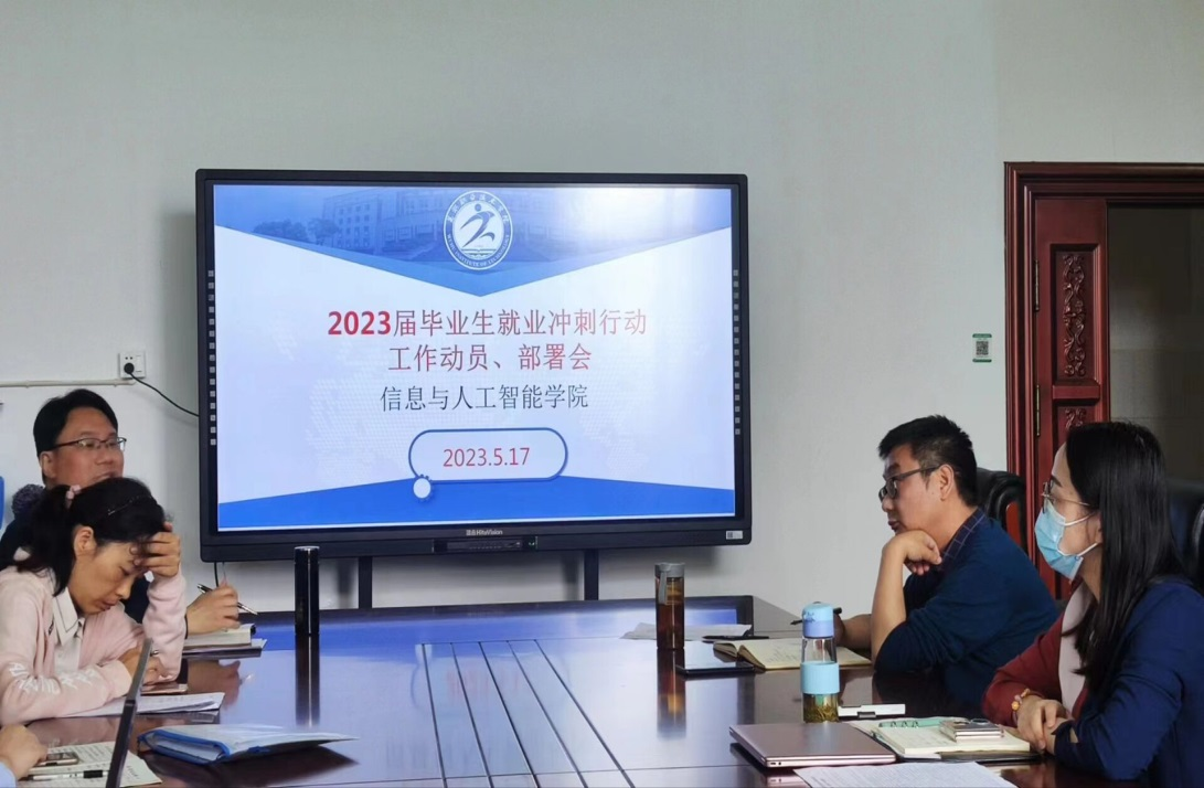 近日,加快促进毕业生顺利就业,信息与人工智能学院启动2023届毕业生就业“百日冲刺”行动,召开毕业生就业创业工作推进大会,学院全体教师参加,会议由组织员查静芳主持。