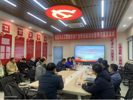为深入推进产教融合,汇聚学院高质量发展合力,全面提高人才培养质量,1月20日下午,信息与人工智能学院召开产业教授座谈会暨聘书颁发仪式。学院2022年、2023年聘任的产业教授应邀出席,学院党政班子成员、各教研室主任和专业带头人、教学秘书参加。会议由学院党总支副书记杨琦主持。