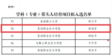 近日,省教育工委公布2024年中青年教师培养行动项目入选名单。我院程鸿芳教授入选学科(专业)带头人培育项目。