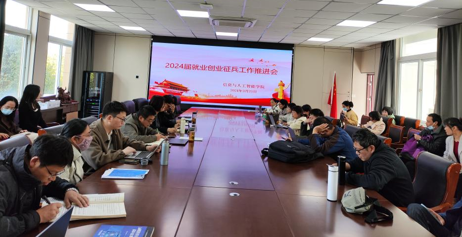 春风拂细柳,就业育新人。为抢抓春季毕业生就业工作关键期,扎实推进2024届毕业生就业创业征兵工作,信息与人工智能学院于3月21日下午在信实楼208会议室召开2024届就业创业征兵工作推进会议。学院全体教职工参加会议,会议由党总支副书记杨琦主持。