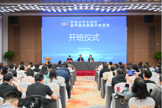 8月22日上午,芜湖职业技术学院承办的安徽省2024年职业院校教师素质提高计划“名师名匠工作室领衔人培育”省培项目开班仪式在中央城大酒店举行。安徽省高师中心主任袁德水、校党委副书记袁家和、副院长刘育红出席了开班仪式。安徽省全体参训学员,学校人力资源处、继续教育学院及信息与人工智能学院负责人,项目组成员参加了本次仪式。开班仪式由刘育红主持。