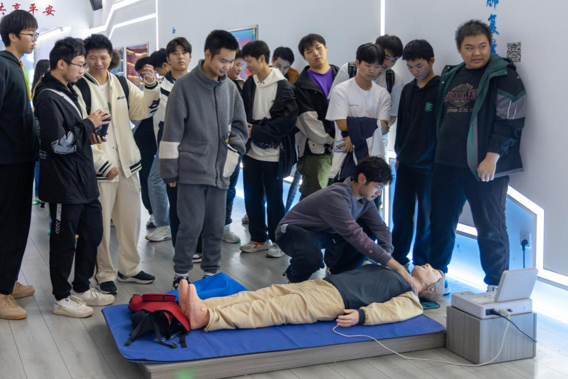 指导教师赵阳对消防安全责任落实、如何排查火灾隐患、日常消防安全管理、消防设施器材维护使用、火灾报警初期火灾处置等方面进行了细致讲解。演习过程中,老师向大家演示如何正确实施心肺复苏和海姆立克急救的方法,并和同学们共同演习操练,轮流对假人道具进行心肺复苏练习,确保每位同学都有参与感和体验感,进一步巩固大家面对突发状况的紧急救援知识和能力。