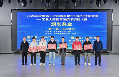 10月20日,2025年安徽省工业和信息化行业职业技能大赛——工业大数据算法技术技能大赛在安庆落幕。经过理论考试与实际操作两轮比拼,我校信息与人工智能学院马杰、韦帝一团队荣获学生组第一名,将代表安徽省参加第三届全国工业和信息化技术技能大赛决赛,靳子龙、许义团队荣获学生组第三名。