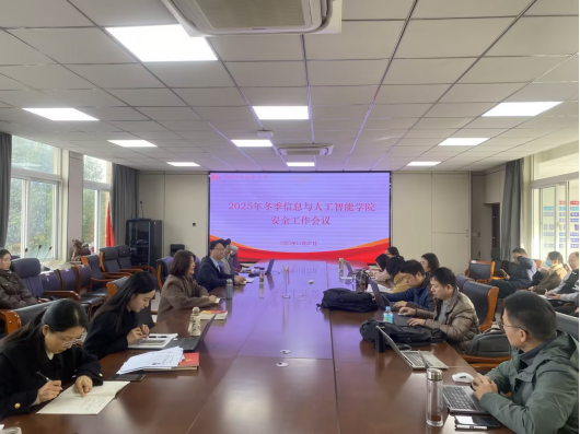 为深入贯彻落实学校关于校园安全工作的部署要求,切实保障师生生命财产安全和教学科研秩序,信息与人工智能学院11月27日召开2025年冬季安全工作会议。会议由学院党总支书记杨琦主持,全体教职工参加。