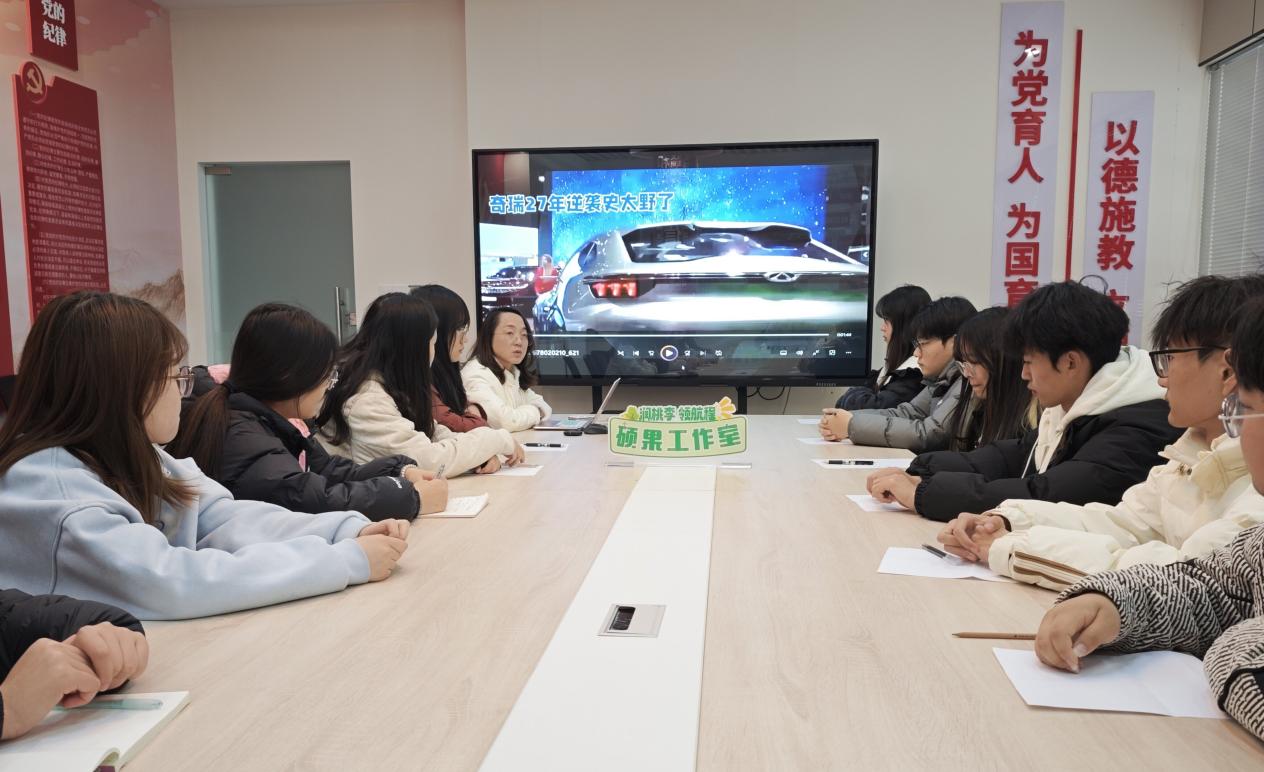 活动中,“硕果工作室”负责人、学院党总支副书记查静芳通过PPT、短视频等形式,解读“奇瑞小草房精神”内涵。上世纪90年代,奇瑞创业者以小草房为起点,怀揣“造中国自己的汽车”梦想,克服多重困难走出自主创新之路,凝练出“艰苦奋斗、自主创新、务实担当、追求卓越”的精神。作为扎根芜湖的高职院校,学院与地方经济同频共振,该精神与学院人才培养目标高度契合,更让学生明晰所学专业与芜湖汽车产业升级的紧密联系。