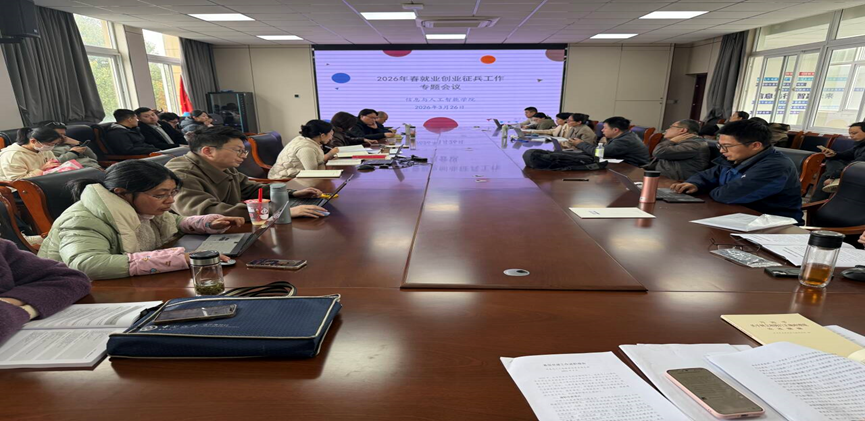 3月26日下午,信息与人工智能学院召开2026年春季就业创业征兵专题会议,党总支书记杨琦主持并动员,全院教职工参会,共商就业创业、征兵动员及校企协同等重点工作。