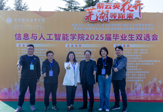 11月5日,信息与人工智能学院联合经济开发区人社局和党建共建单位龙湖社区在北校区篮球场成功举办2025届毕业生校园双选会。校党委委员组织(统战)部部长李冬生、经济开发区人社局人力资源中心季凌洁主任和党建共建单位龙湖社区党委副书记汪洋莅临招聘会现场指导。