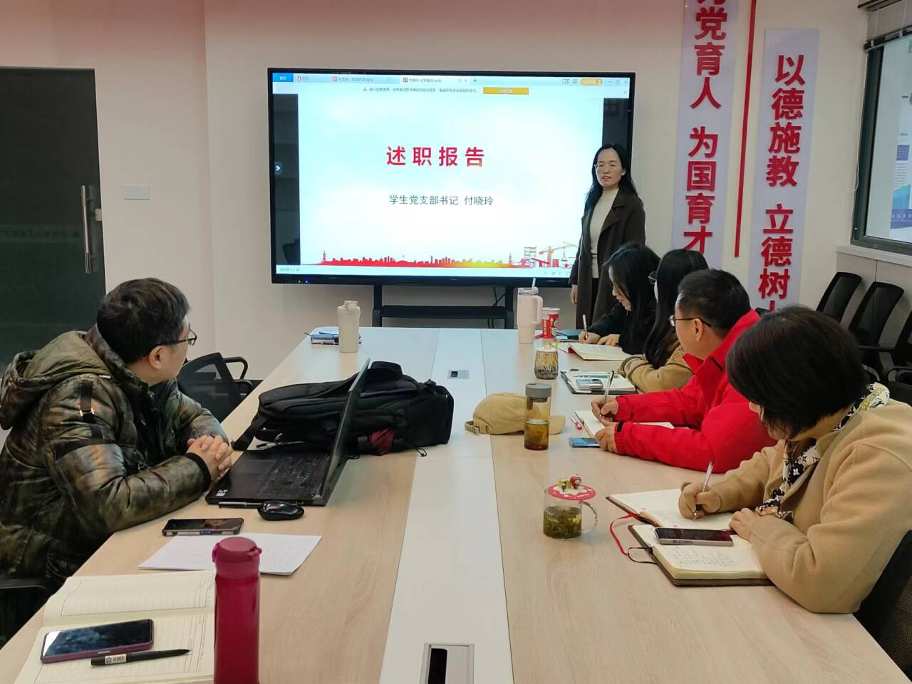 参会成员认真听取了两位党支部书记的述职,并逐一评议。杨琦指出,2023年各党支部书记能积极履行第一责任人职责,抓好基层党建“最后一公里”,以党建引领项目建设高质量推进各支部党建工作取得了新进展和新的成绩。她在肯定支部取得成绩的同时,也指出各支部在政治理论学习和支部建设上存在的问题,要求各支部要压紧压实责任,发挥各支部优势和特色,高标准创建党建品牌,持续深化“安徽省样板支部”和“双带头人书记工作室”的建设工作和引领工作,以点带面做好思想引领,整体提升,以高质量党建推动学院各项工作高质量发展。两位支部书记在表态中表示,在工作中,将围绕学院的中心工作,针对问题抓好整改和落实,充分发挥党支部的战斗堡垒作用和支部党员的先锋模范带头作用。(文、图/付晓玲 审/杨琦)