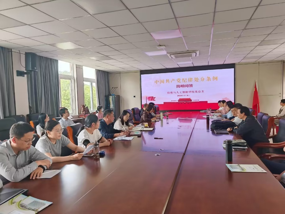 为了深入贯彻全面从严治党的要求,提升学院全体党员对党的纪律规矩的认识和理解,信息与人工智能学院于5月9日下午组织召开了“学条例、明纪律、守底线”党日活动,学院总支纪律委员深入解读《中国共产党纪律处分条例》。