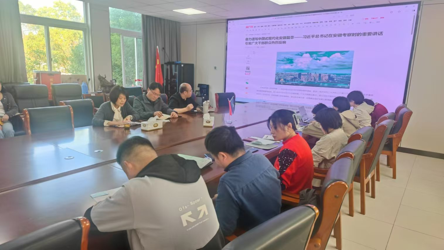 会上,院党总支副书记杨琦首先带领大家观看了习近平总书记在安徽考察期间的系列报道,10月17日至18日,总书记先后来到安庆、合肥,深入历史文化街区、科技创新园区等考察调研,考察期间,总书记强调,安徽要发挥多重国家发展战略叠加优势,奋力谱写中国式现代化安徽篇章。
