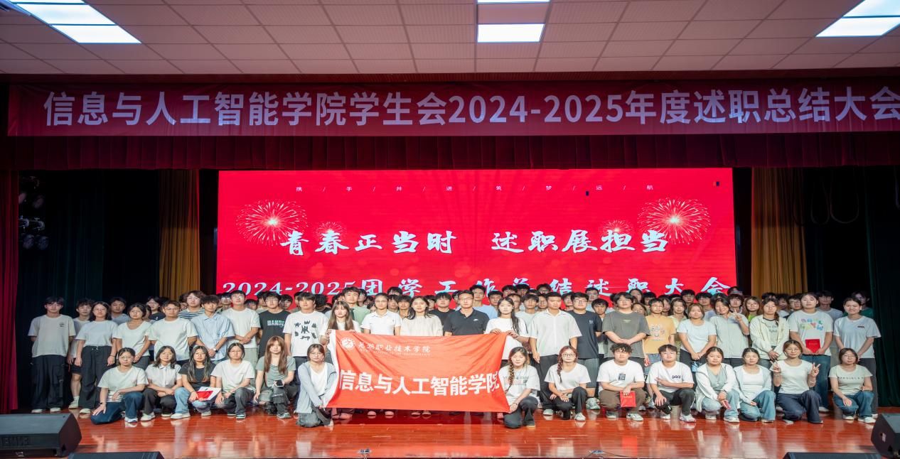 盛夏六月,青春激荡。当“凝梦笃行时,清歌待远日”的旋律在芜湖职业技术学院银湖校区学术大礼堂回荡时,一场关乎责任与成长的青春盛会正式拉开帷幕。6月13日,信息与人工智能学院学生会以创新形式与饱满热情,在师生瞩目下举办年度工作总结述职大会。学院领导、老师及全体学生会成员齐聚一堂,共鉴成长,同谋新篇。