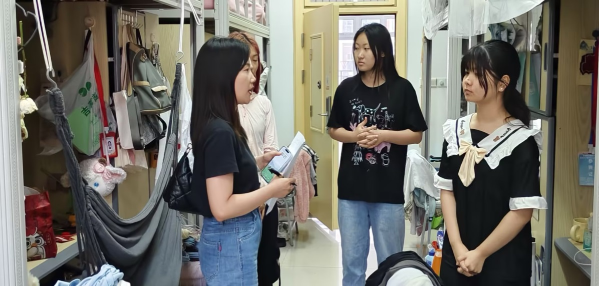 在检查过程中,检查组发现大部分宿舍能够保持整洁有序,同学们也能够自觉遵守宿舍管理规定,按时清理垃圾、保持室内卫生。但仍有部分宿舍存在卫生死角、物品摆放杂乱等问题。对此,检查组现场提出了整改意见,并要求同学们尽快进行整改。强调了宿舍安全的重要性,提醒同学们要养成良好的卫生习惯和安全意识,共同维护宿舍的整洁和安全。除了检查卫生状况外,检查组还向同学们普及了安全用电、防火防盗、防诈骗等安全知识。