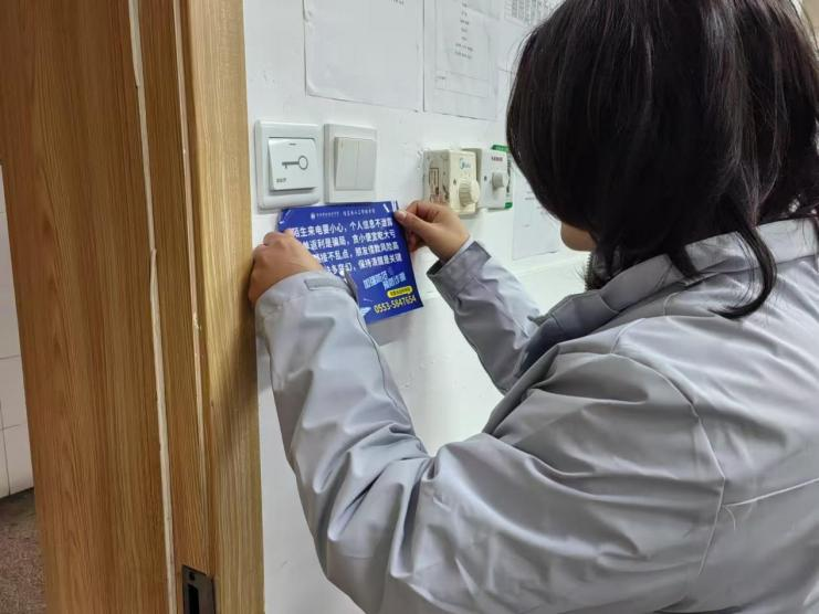 学院组织志愿者队伍,将防诈贴纸张贴于学院楼、教室和宿舍等学生日常活动频繁区域的显眼位置。通过这一举措,确保每位学生都能在日常学习生活中随时接触到防诈骗知识,潜移默化中增强自我保护能力。同时,为加深学生对防诈骗知识的理解和记忆,学院的志愿者们还深入到宿舍中积极讲解各种诈骗手段的特点和识别方法,结合实际案例,引导广大学生学会如何在遇到诈骗时冷静应对,有效避免经济损失。